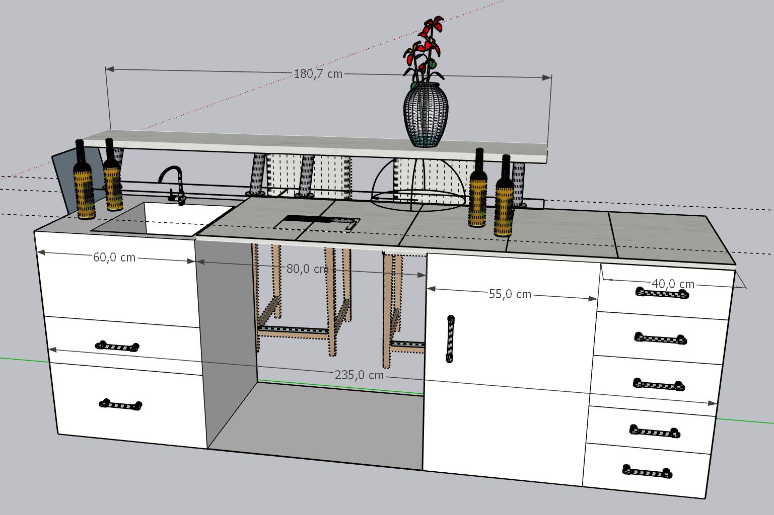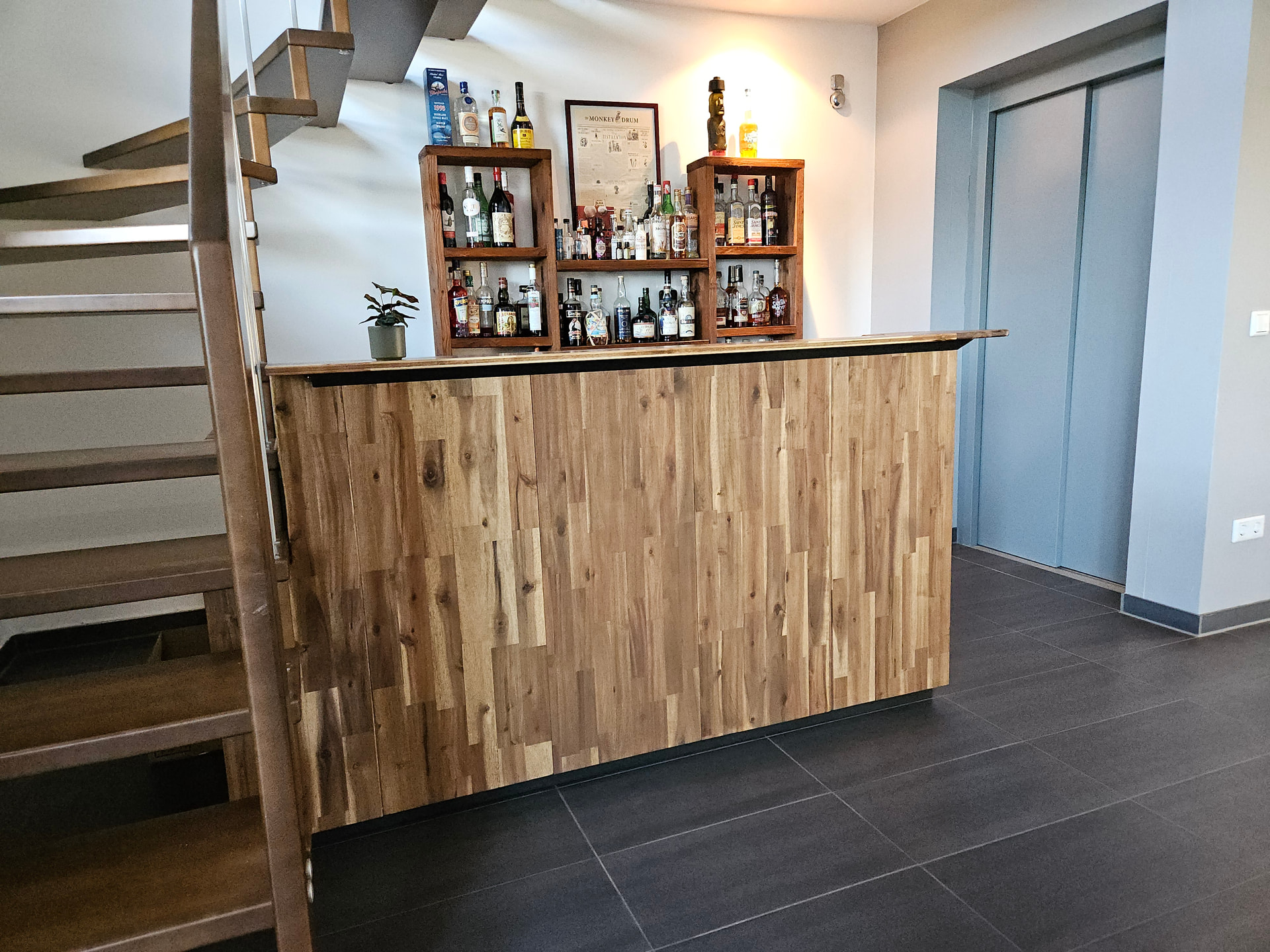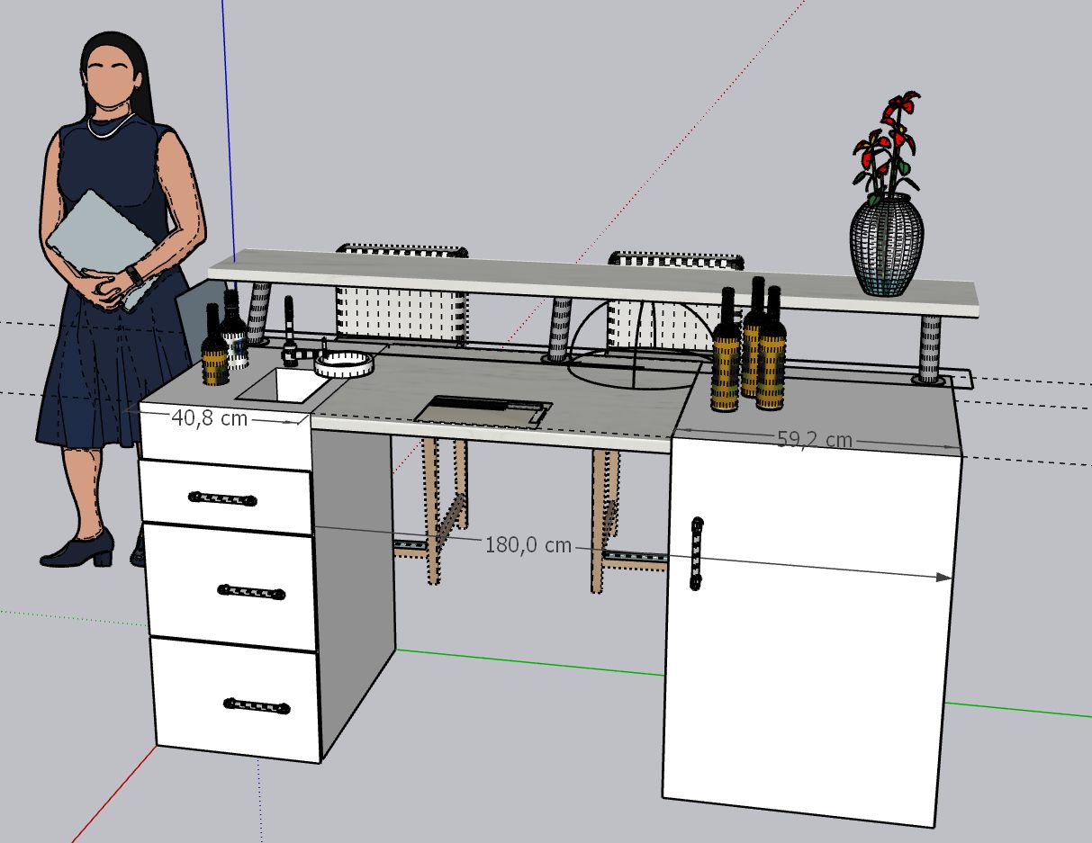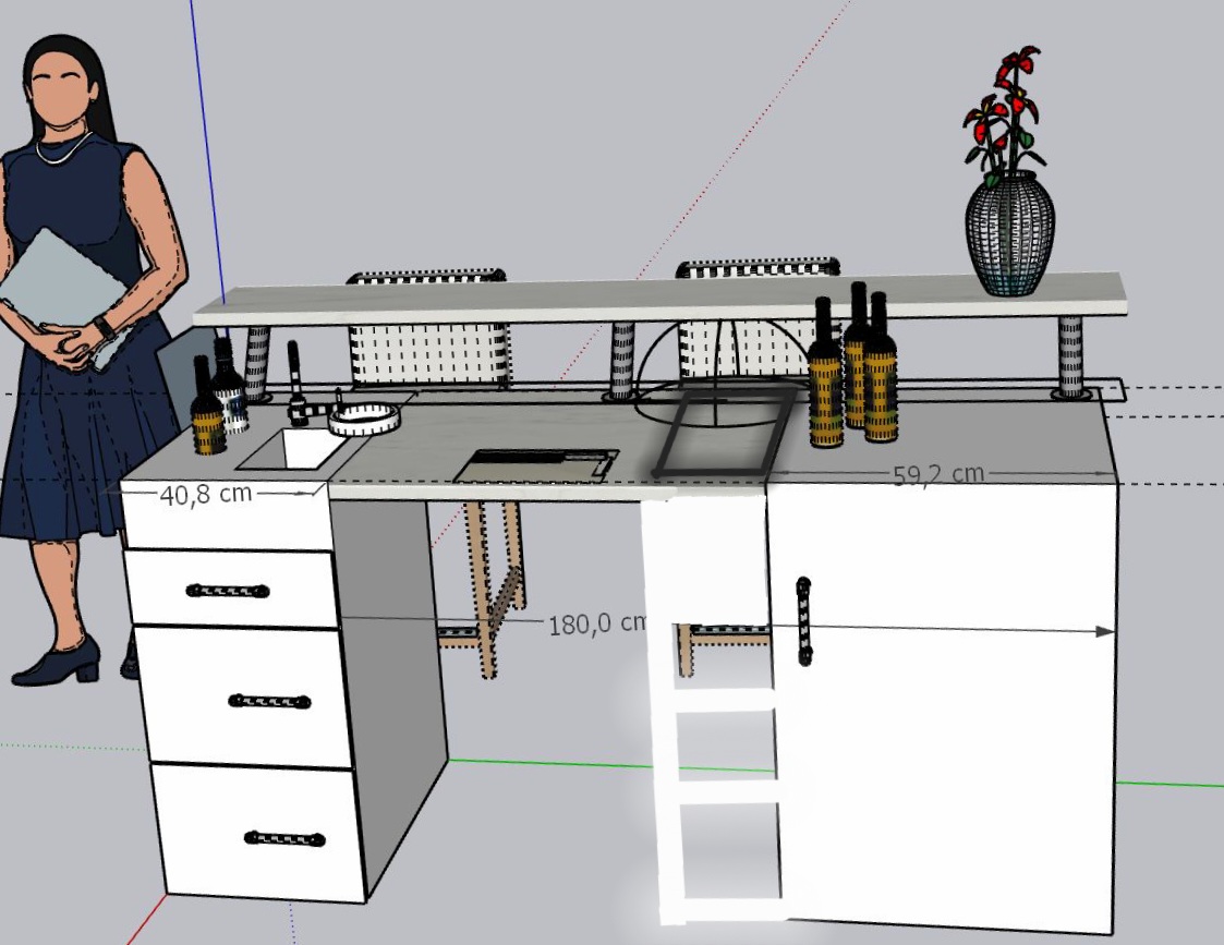 Da ich im Rollstuhl sitze muss die Bar mittig unter fahrbar sein und auf Sitzhöhe geplant werden.
