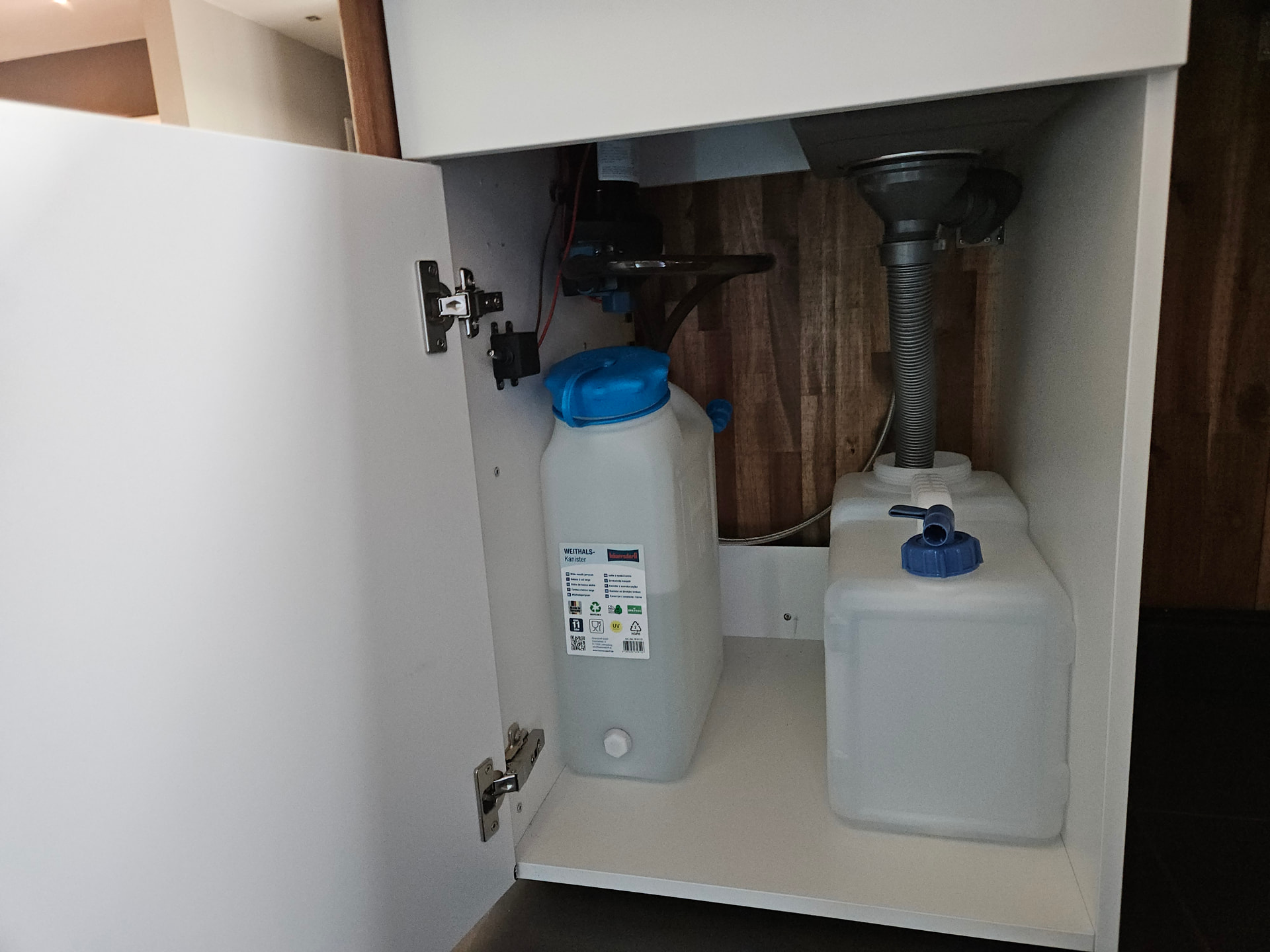 Auf Amazon habe ich folgende All in One Lösung gefunden - ist recht breit, müsste also Links 60cm Schrank verbauen - wäre aber ggf. eh nicht schlecht, da dort ein Abwasserbehälter + Pumpe und Frischwasser noch untergebracht werden soll: