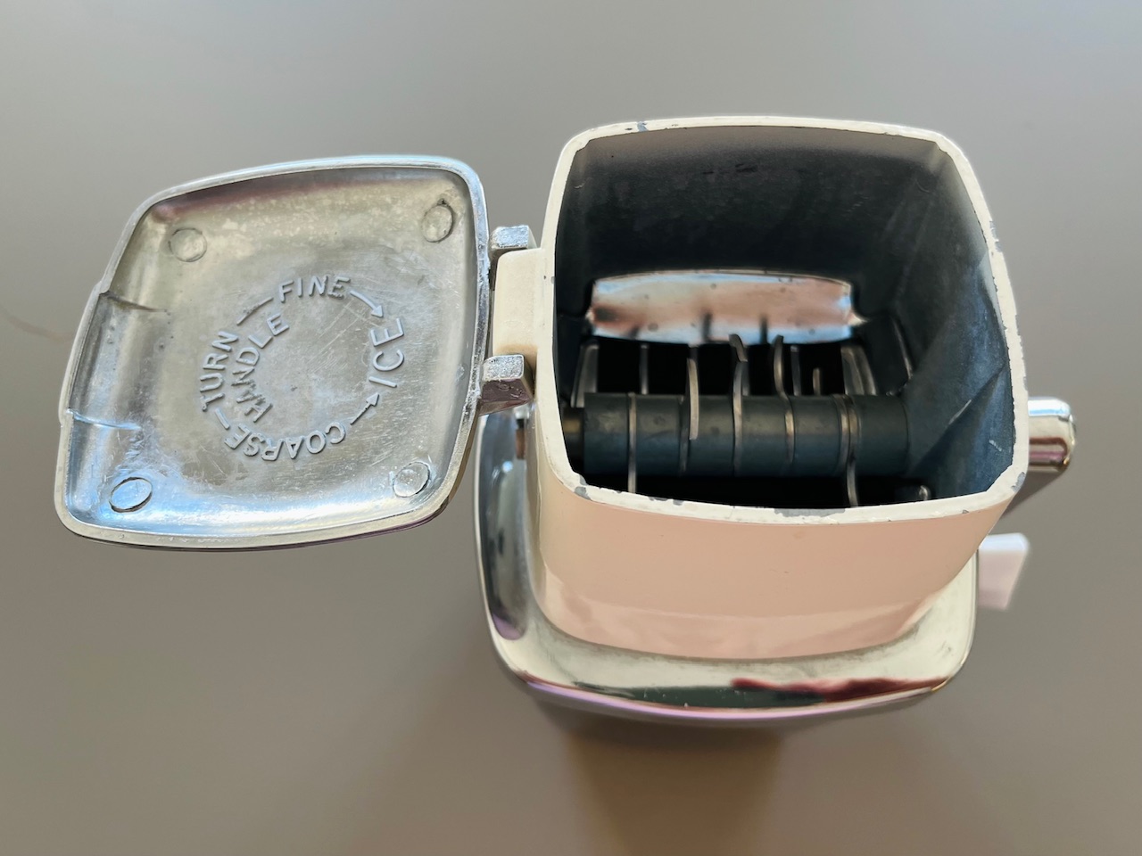 Ich glaub wir hatten bzw. haben den gleichen Eiscrusher, Leopold sagt mir jedenfalls was, der ganz klassische verchromte mit Kurbel? Meiner funktioniert noch, nutze ihn jedoch mittlerweile nur selten, was daran liegt, dass ich zu Hause kaum noch Tiki-Drinks, Tropicals usw. mache. - und wenn doch, dann für Gäste, und bei solchen Anlässen kaufe ich Crushed Ice fertig im Großmarkt.