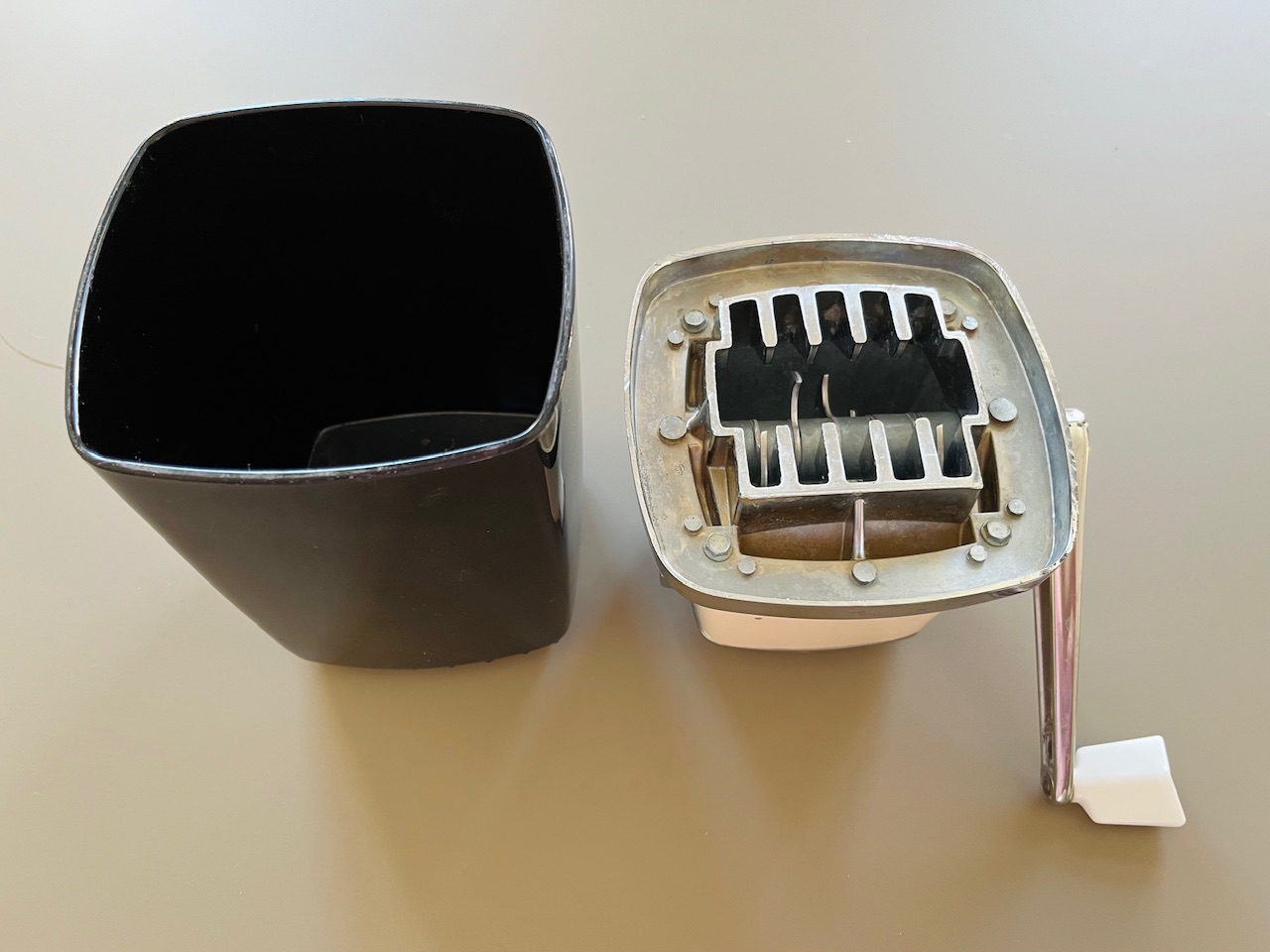 Die wenigen Würfel die ich noch crushe werden jetzt mit einem gebrauchten Vintage Crusher kleingehäckselt. Ist zwar auch nicht DAS Premium Teil und das Volumen ist nicht groß aber ausreichend für die Nutzungsintensität. Er besteht zu 100% aus Metall. Sollte somit nahezu unkaputtbar sein.