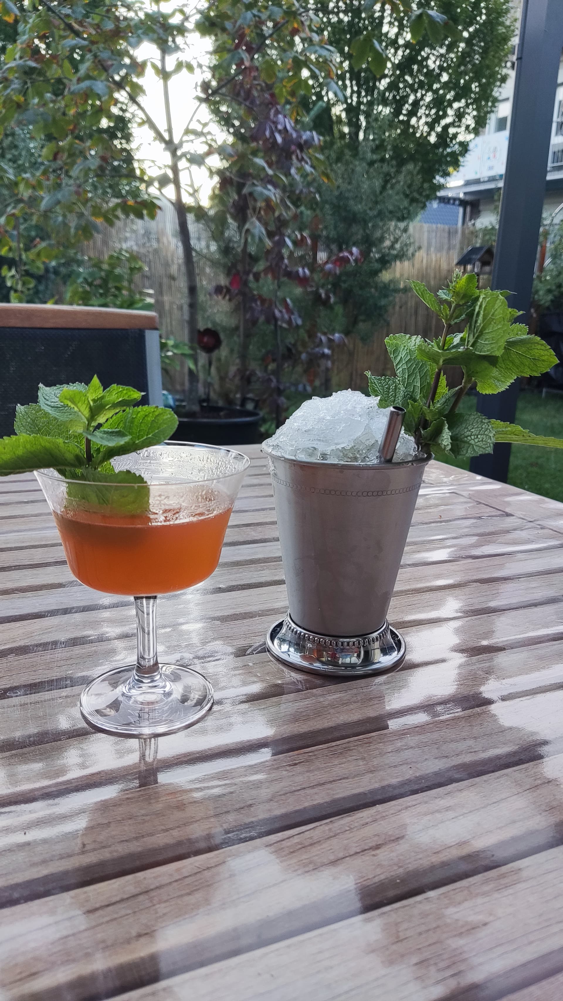 Habe neulich einen Gin Basil Smash mit Agricole blanc statt Gin und Limetten- statt Zitronensaft gemixt.