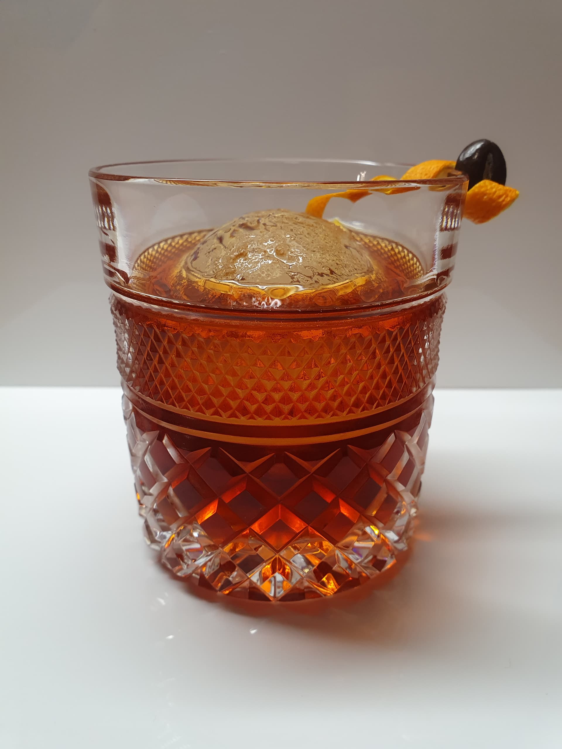 Auf Eis rühren, bis der Drink schön kalt ist, anschließend auf frisches Eis abseihen und garnieren.
