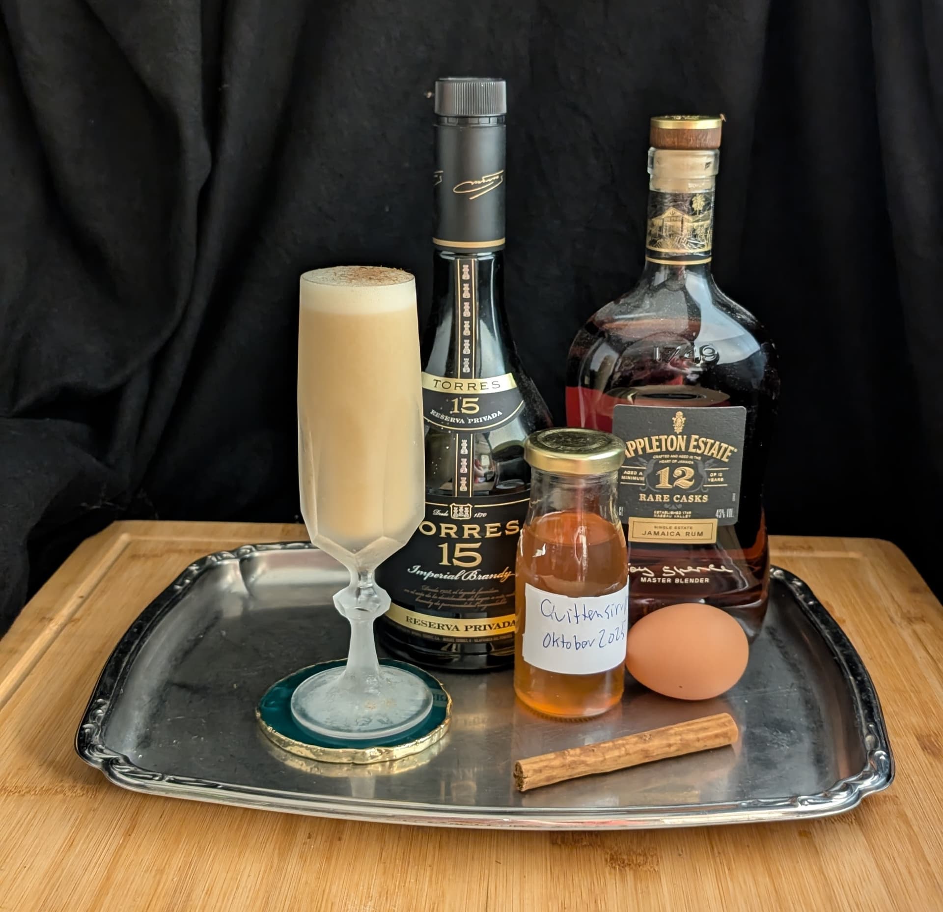 Die Kombination aus spanischem Brandy und mildem Jamaica Rum funktioniert wie immer wunderbar. Melasse, Karamell, Eichenholz, warme Gewürze wie Muskat, Nelke, Vanille und auch der Zimt, der in der Garnitur auftaucht, etwas Kaffee und Leder, dazu fruchtige Anklänge, insbesondere Quitte, aber auch getrocknete Aprikose, sowie Rosine. Außerdem der typische dessertartige Geschmack, den Eidotter einbringt. Die Textur ist richtig schön cremig.